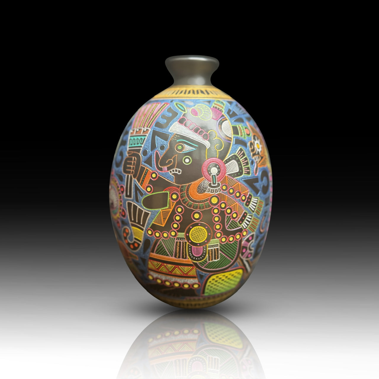 Small, exquisite, museum quality vessel featuring the two sides of my Atlantis Studio styles.